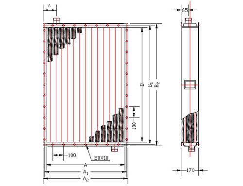 ②-表示鋼制散熱器通風(fēng)正截面寬尺寸分米化整